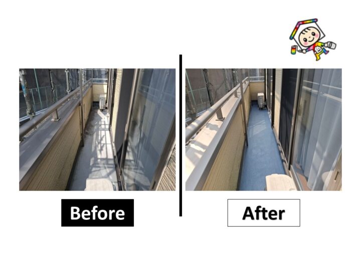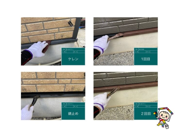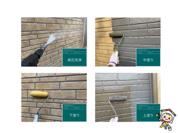高圧洗浄で下地を整えて、塗料をたっぷりと塗り込みます。メーカー基準の乾燥時間を守った3回塗り施工しました。